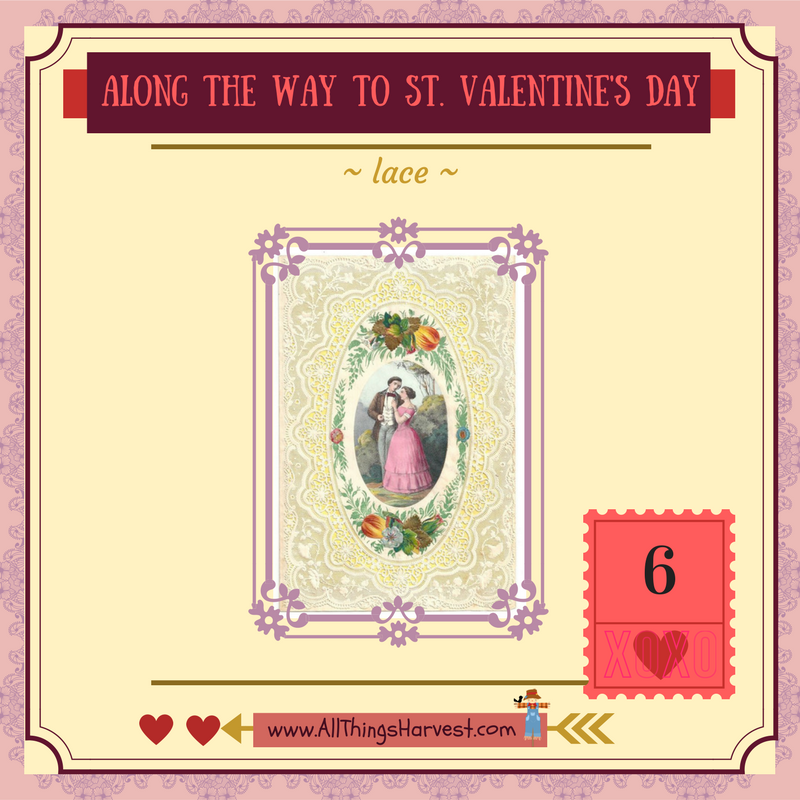 St. Valentine’s cards were originally made by hand with real lace and ribbons. Rather than being utilitarian, lace has always been something added for adornment and as such has an association with romance. In 1834 Joseph Addenbrooke of England accidentally discovered a way to make paper lace. This ushered in the Golden Age of Valentines in the 1840s to 1860s where paper lace decorated cards were all the vogue.